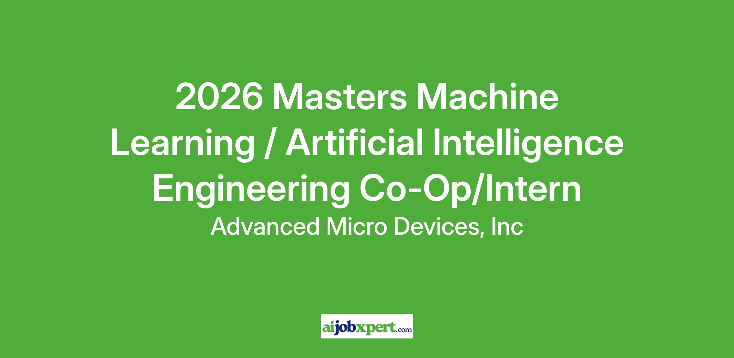 WHAT YOU DO AT AMD CHANGES EVERYTHING At AMD, our mission is to build great products that accelerate next-generation computing experiences – from AI and data centers, to PCs, gaming and embedded systems. Grounded in a culture of innovation and collaboration, we believe real progress comes from bold ideas, human ingenuity and a shared passion to create something extraordinary. When you join AMD, you’ll discover the real differentiator is our culture. We push the limits of innovation to solve the world’s most important challenges—striving for execution excellence, while being direct, humble, collaborative, and inclusive of diverse perspectives. Join us as we shape the future of AI and beyond. Together, we advance your career. As an AMD Co-op, you’ll be placed at the epicenter of the AI ecosystem, working alongside experts and industry pioneers. You’ll do important work, learn new skills, expand your network, and gain real-world experience on projects that impact millions of end-users worldwide. Whether you’re an undergrad or a PhD student, your contributions matter—and your experience here will be a launchpad for what comes next. JOB DETAILS: Location: San Jose, CA or Santa Clara, CA Onsite/Hybrid: This role requires the student to work full time (40 hours a week), in either a hybrid or onsite work structure throughout the duration of the co-op/intern term Duration: Spring/Summer Co-op: January 26, 2026 - August 7, 2026 Summer/Fall Co-op: May 18, 2026 - December 11, 2026 or June 22, 2026 - December 11, 2026 Spring Internship: January 26, 2026 – May 1, 2026 Summer Internship: May 18, 2026 - August 7, 2026 or June 22, 2026 – September 11, 2026 Fall Internship: September 14, 2026 – December 11, 2026 WHAT YOU WILL BE DOING: We are seeking a highly motivated Machine Learning (ML)/ Artificial Intelligence (AI) intern/co-op to join our team and participate in research and development of next-generation product differentiation features with extraordinary ML/AI engineers. In this role – We will help you learn innovative new technologies in Machine Learning | AI | High Performance Compute We will train you to analyze and implement changes to algorithms to improve AI performance and user experiences We may assign you to one or more of the following project work - Work on machine learning techniques to build applications for source code analysis and Image Corruption Detection Research, development, and deployment in machine learning-based and computer vision products on AMD’s current and future products Fixing and addressing problems with deployed AI to improve user experience Support AI software teams with roadmap planning, collateral development, and customer engagements WHO WE ARE LOOKING FOR: You are currently enrolled in a US based University in a Master's degree program majoring in computer science, computer engineering, data science / analytics, or a related field If you have knowledge / experience with any of the following technical skills (or related areas) and are enthusiastic about this role, we strongly encourage you to apply – Machine learning, data science, computer vision, statistics, and mathematics Programming in Python, C/C++ Relational (SQL) and no-SQL databases Machine learning algorithms and frameworks Deep learning / AI framework like Pytorch, Tensorflow, Caffe. Familiarity with cloud (e.g., AWS, GCP, Azure) Note: By submitting your application, you are indicating your interest in AMD intern positions. We are recruiting for multiple positions, and if your experience aligns with any of our intern opportunities, a recruiter will contact you. Benefits offered are described: AMD benefits at a glance. AMD does not accept unsolicited resumes from headhunters, recruitment agencies, or fee-based recruitment services. AMD and its subsidiaries are equal opportunity, inclusive employers and will consider all applicants without regard to age, ancestry, color, marital status, medical condition, mental or physical disability, national origin, race, religion, political and/or third-party affiliation, sex, pregnancy, sexual orientation, gender identity, military or veteran status, or any other characteristic protected by law. We encourage applications from all qualified candidates and will accommodate applicants’ needs under the respective laws throughout all stages of the recruitment and selection process.As an AMD Co-op, you’ll be placed at the epicenter of the AI ecosystem, working alongside experts and industry pioneers. You’ll do important work, learn new skills, expand your network, and gain real-world experience on projects that impact millions of end-users worldwide. Whether you’re an undergrad or a PhD student, your contributions matter—and your experience here will be a launchpad for what comes next. JOB DETAILS: Location: San Jose, CA or Santa Clara, CA Onsite/Hybrid: This role requires the student to work full time (40 hours a week), in either a hybrid or onsite work structure throughout the duration of the co-op/intern term Duration: Spring/Summer Co-op: January 26, 2026 - August 7, 2026 Summer/Fall Co-op: May 18, 2026 - December 11, 2026 or June 22, 2026 - December 11, 2026 Spring Internship: January 26, 2026 – May 1, 2026 Summer Internship: May 18, 2026 - August 7, 2026 or June 22, 2026 – September 11, 2026 Fall Internship: September 14, 2026 – December 11, 2026 WHAT YOU WILL BE DOING: We are seeking a highly motivated Machine Learning (ML)/ Artificial Intelligence (AI) intern/co-op to join our team and participate in research and development of next-generation product differentiation features with extraordinary ML/AI engineers. In this role – We will help you learn innovative new technologies in Machine Learning | AI | High Performance Compute We will train you to analyze and implement changes to algorithms to improve AI performance and user experiences We may assign you to one or more of the following project work - Work on machine l