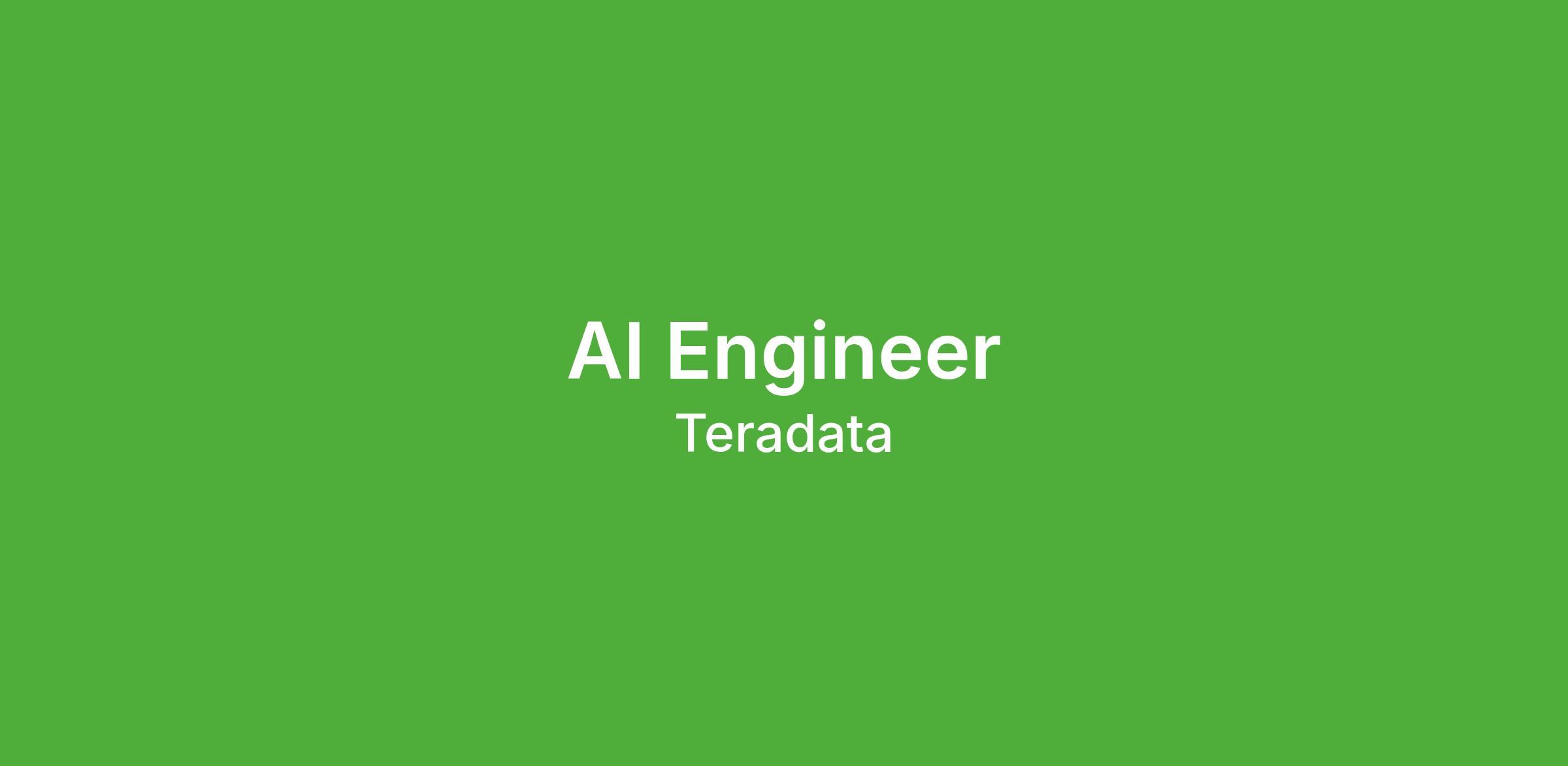 + This position reports into the AI engineering leadership team within Teradata's global engineering organization.