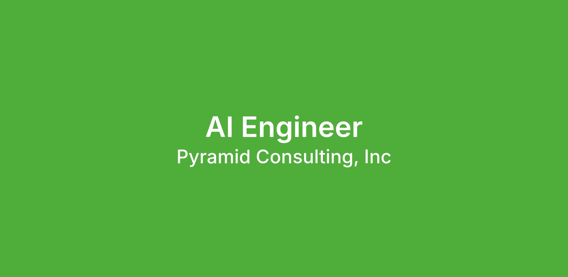By applying to our jobs you agree to receive calls, AI-generated calls, text messages, or emails from Pyramid Consulting, Inc. and its affiliates, and contracted partners. Frequency varies for text messages. Message and data rates may apply. Carriers are not liable for delayed or undelivered messages. You can reply STOP to cancel and HELP for help. You can access our privacy policy .