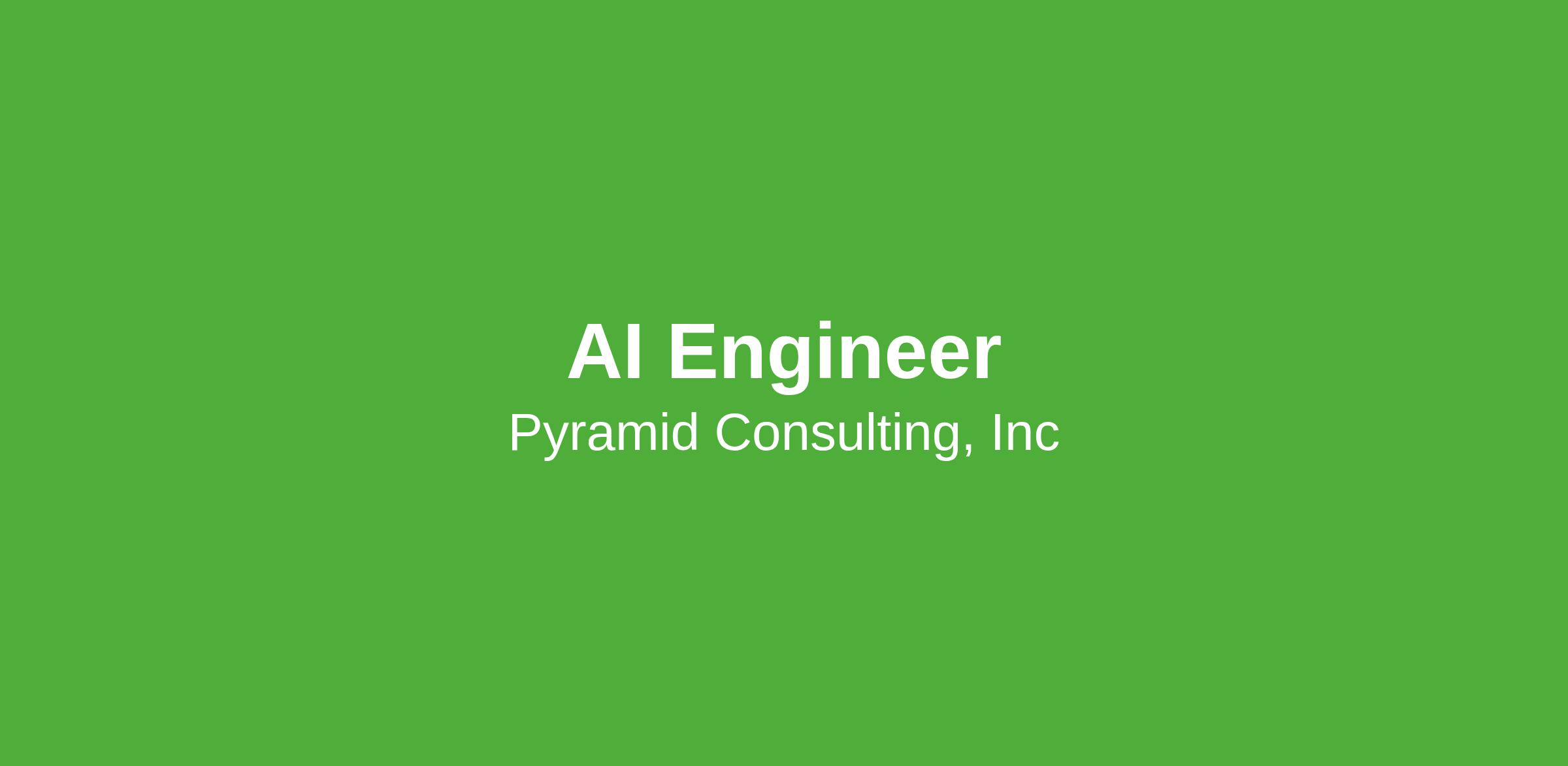 By applying to our jobs you agree to receive calls, AI-generated calls, text messages, or emails from Pyramid Consulting, Inc. and its affiliates, and contracted partners. Frequency varies for text messages. Message and data rates may apply. Carriers are not liable for delayed or undelivered messages. You can reply STOP to cancel and HELP for help. You can access our privacy policy .