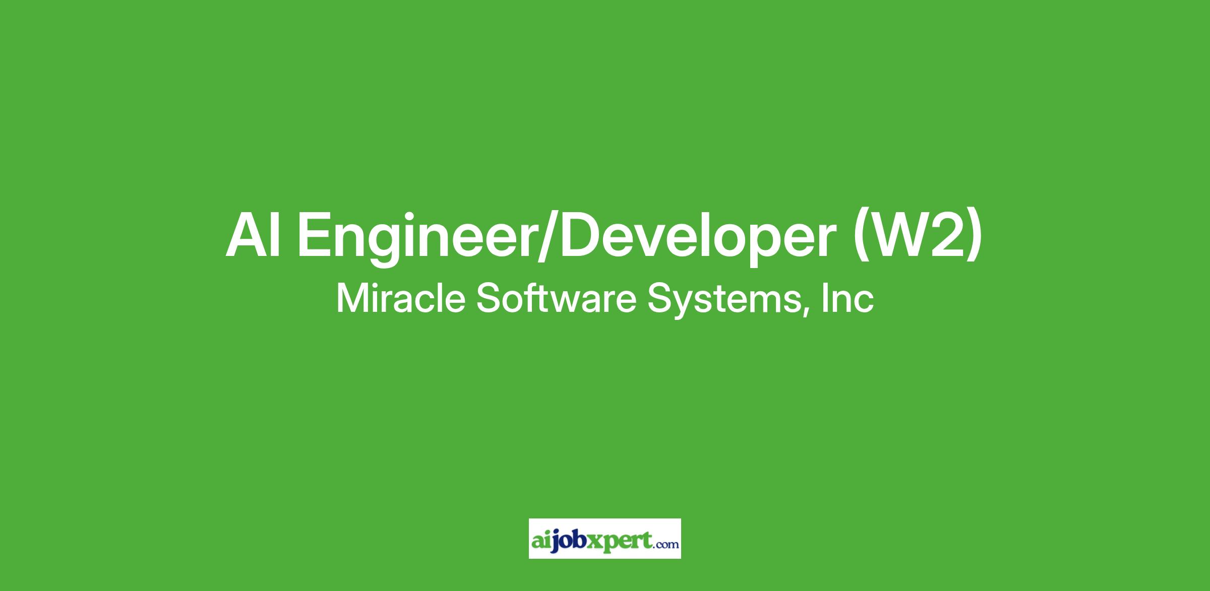 We Miracle Software Systems is looking for the AI Engineer/Developer on W2