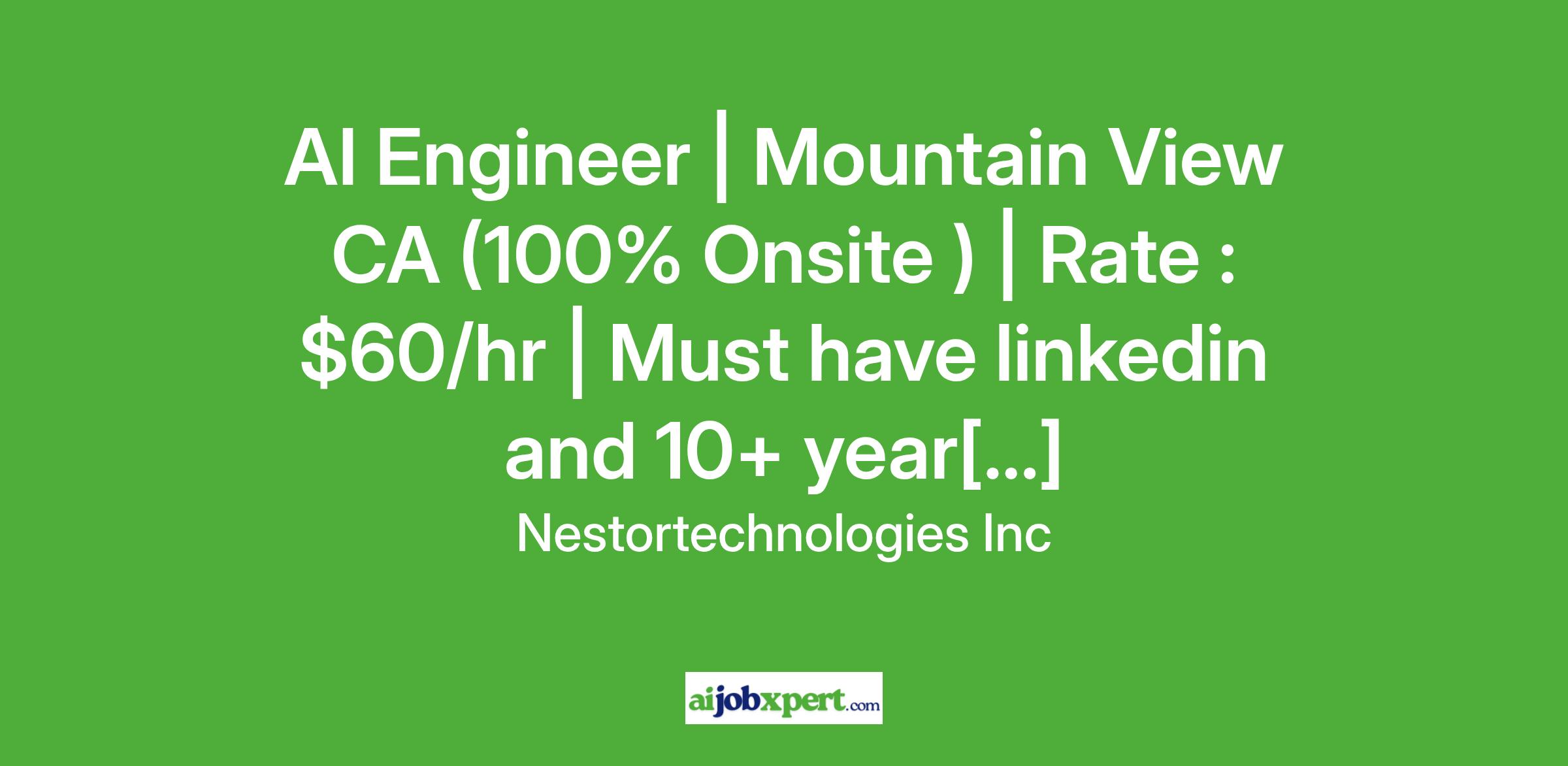 AI Engineer | Mountain View CA (100% Onsite ) | Rate : $60/hr | Must have linkedin and 10+ year[...]
