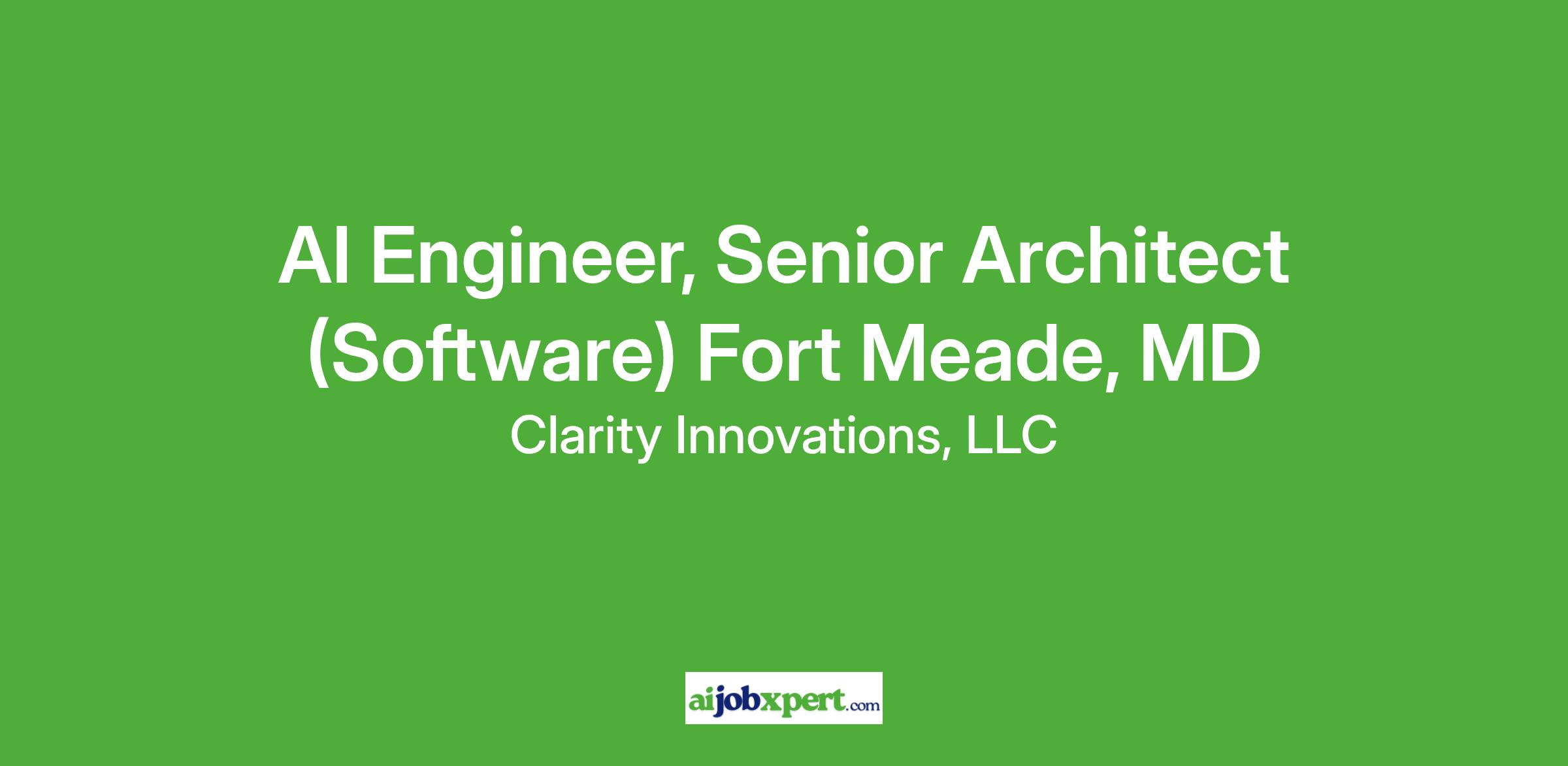 AI Engineer, Senior Architect (Software) Fort Meade, MD