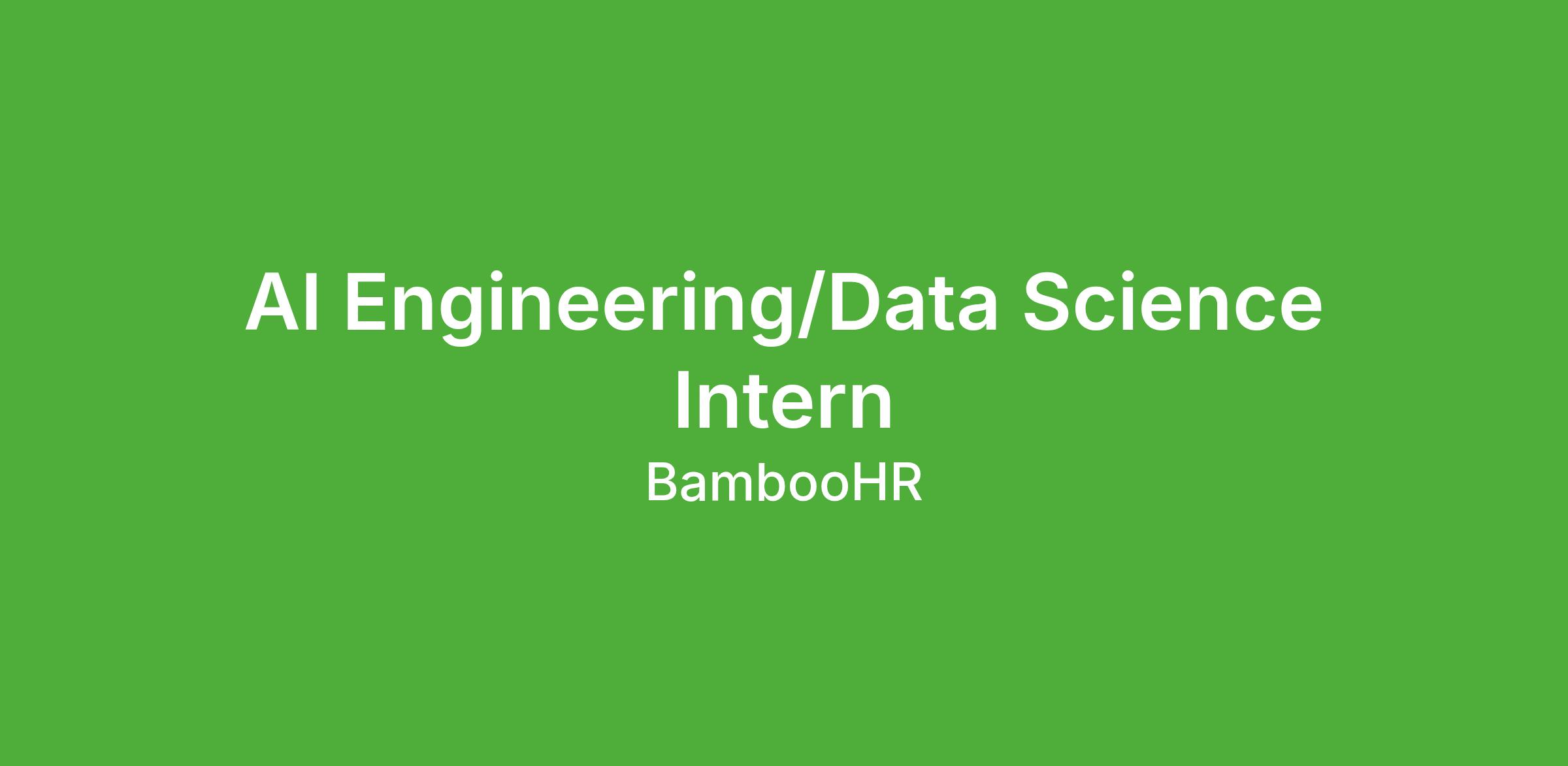 As an AI Engineering / Data Science Intern, you will contribute to our growing AI and machine learning initiatives. You'll make a meaningful impact by harnessing data while working alongside our incredible data science and AI applications teams. You'll be paired with a skilled mentor who will help you develop your skills and make the most of your internship experience. If you get a kick out of solving problems and working with data to derive insights that will help lift people at work, you will love BambooHR.