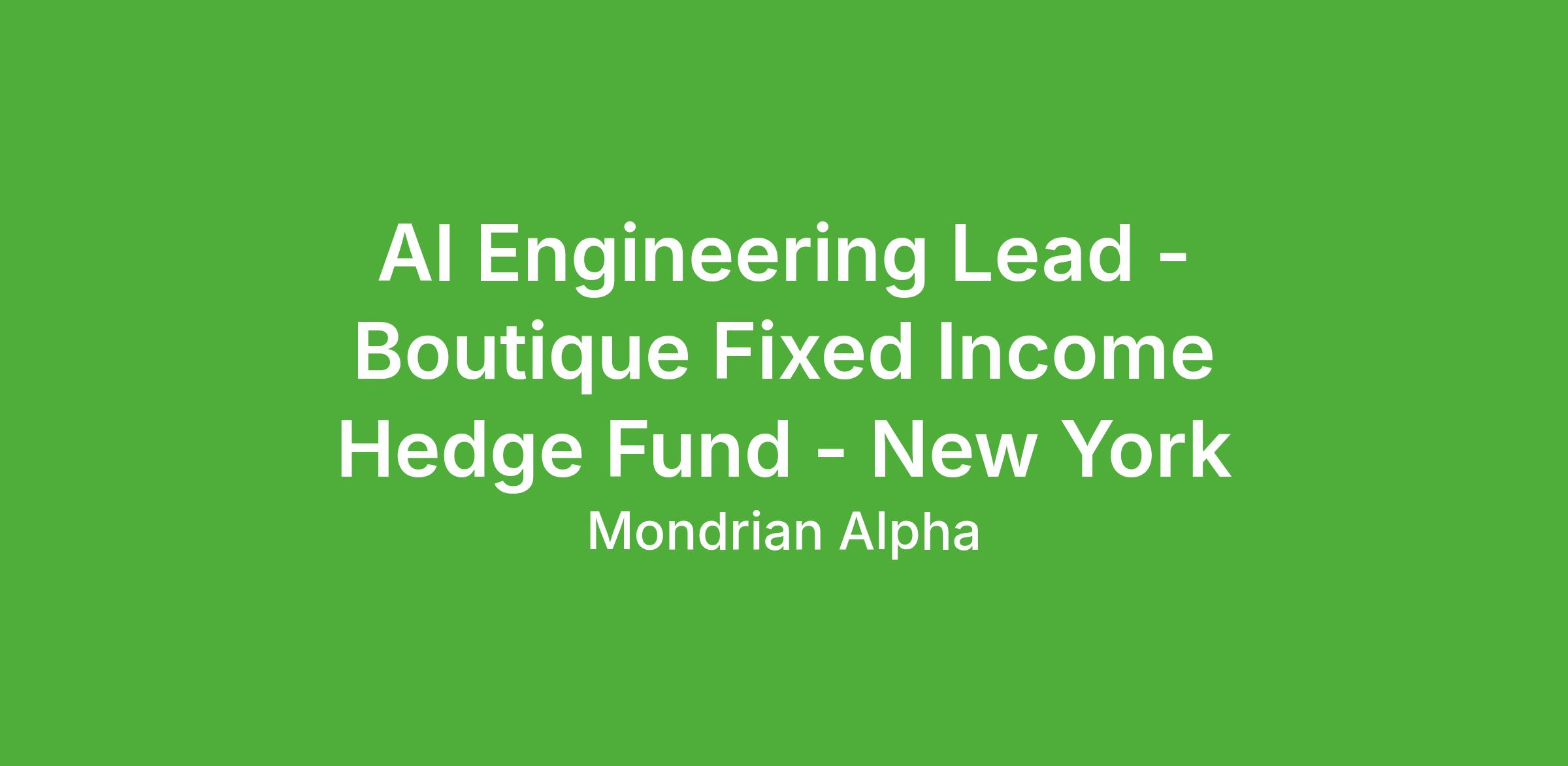 My client, a fixed income hedge fund, is seeking an AI Engineering Lead to build and lead its enterprise AI engineering function, based in New York.