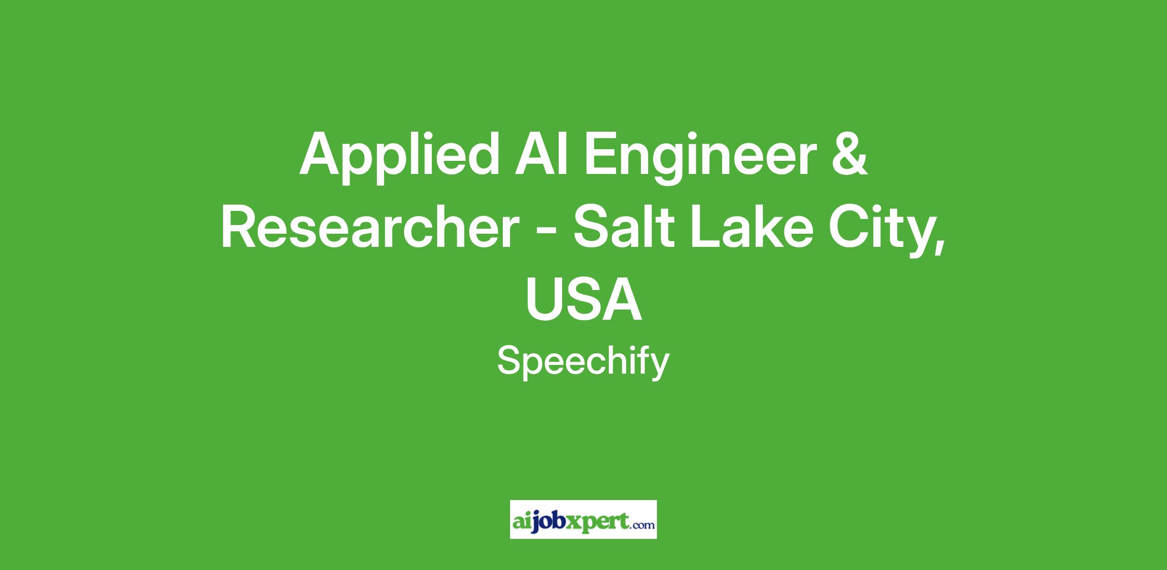 Applied AI Engineer & Researcher - Salt Lake City, USA