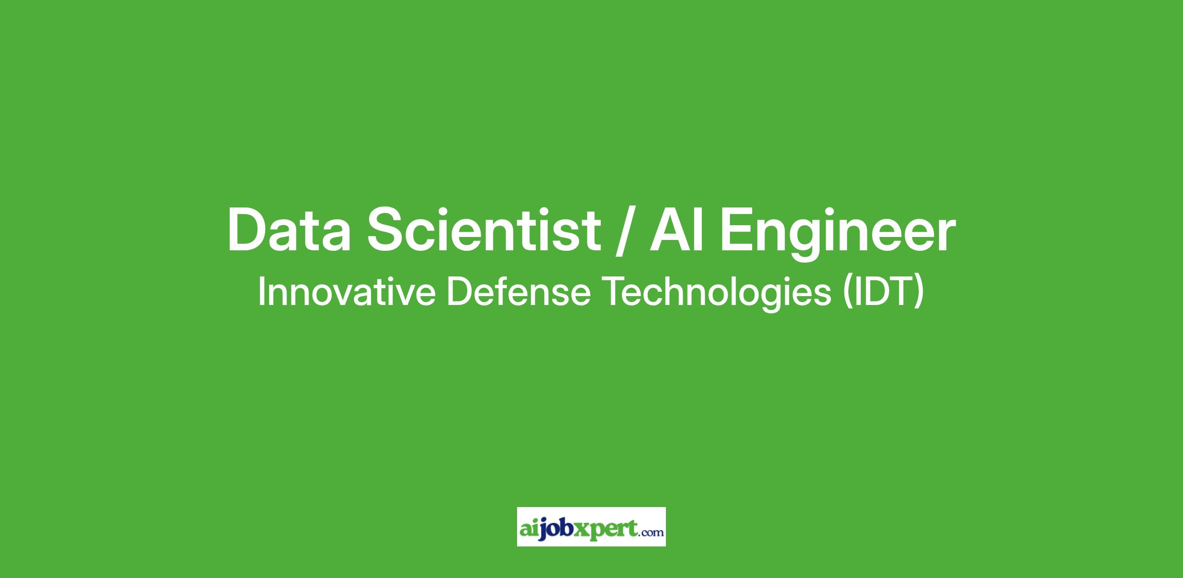 Innovative Defense Technologies(IDT), provider of cutting-edge cloud-based integration, automated testing and data analysis for complex, mission-critical systems in the US Department of Defense (DOD), is seeking a Data Scientist/AI Engineer to be based in our Arlington, VA or Mount Laurel, NJ office. Leveraging advanced software automation, model-based systems engineering (MBSE), and AI-driven capabilities, IDT accelerates capability development, enhances operational readiness, and reduces lifecycle costs for the Department of Defense. The company is dedicated to transforming defense systems through innovation, efficiency, and mission-critical results.