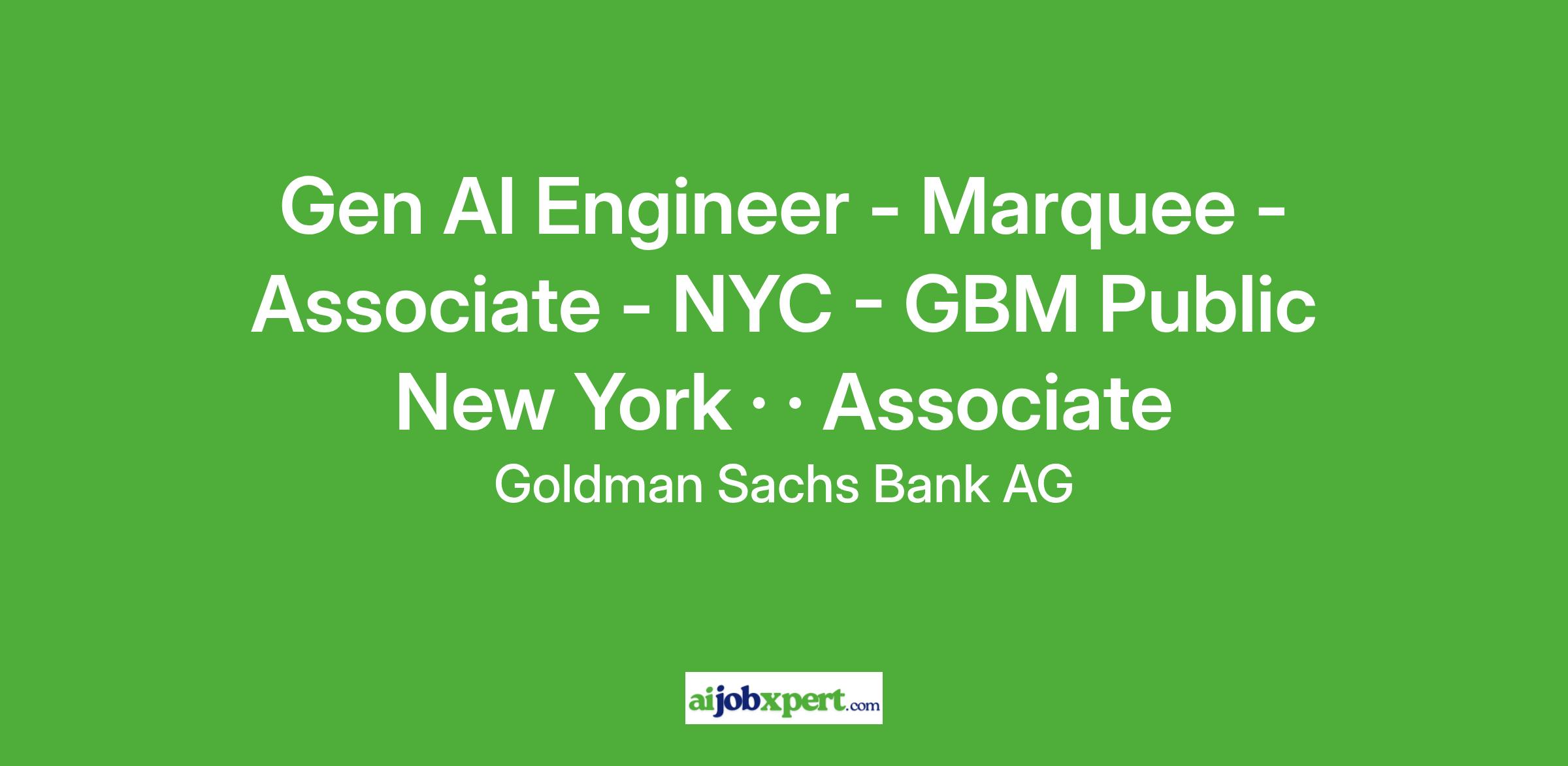Gen AI Engineer - Marquee - Associate - NYC - GBM Public location_on New York, New York, United States