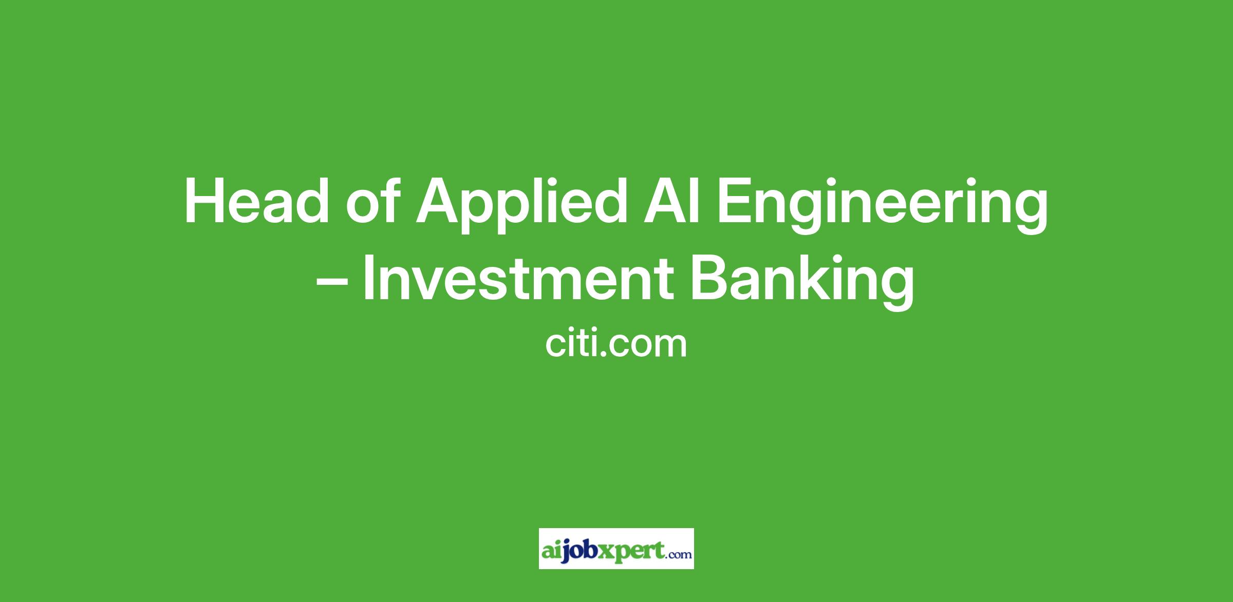 We are seeking a visionary and hands-on Head of Applied AI Engineering to lead the design, development, and deployment of AI-driven solutions for our Banking division, covering Investment (ECM, DCM, M&A), Corporate and Commercial Banking. This role will bridge the front office and advanced technology, bringing intelligent automation and data-driven decision-making into dealmaking.