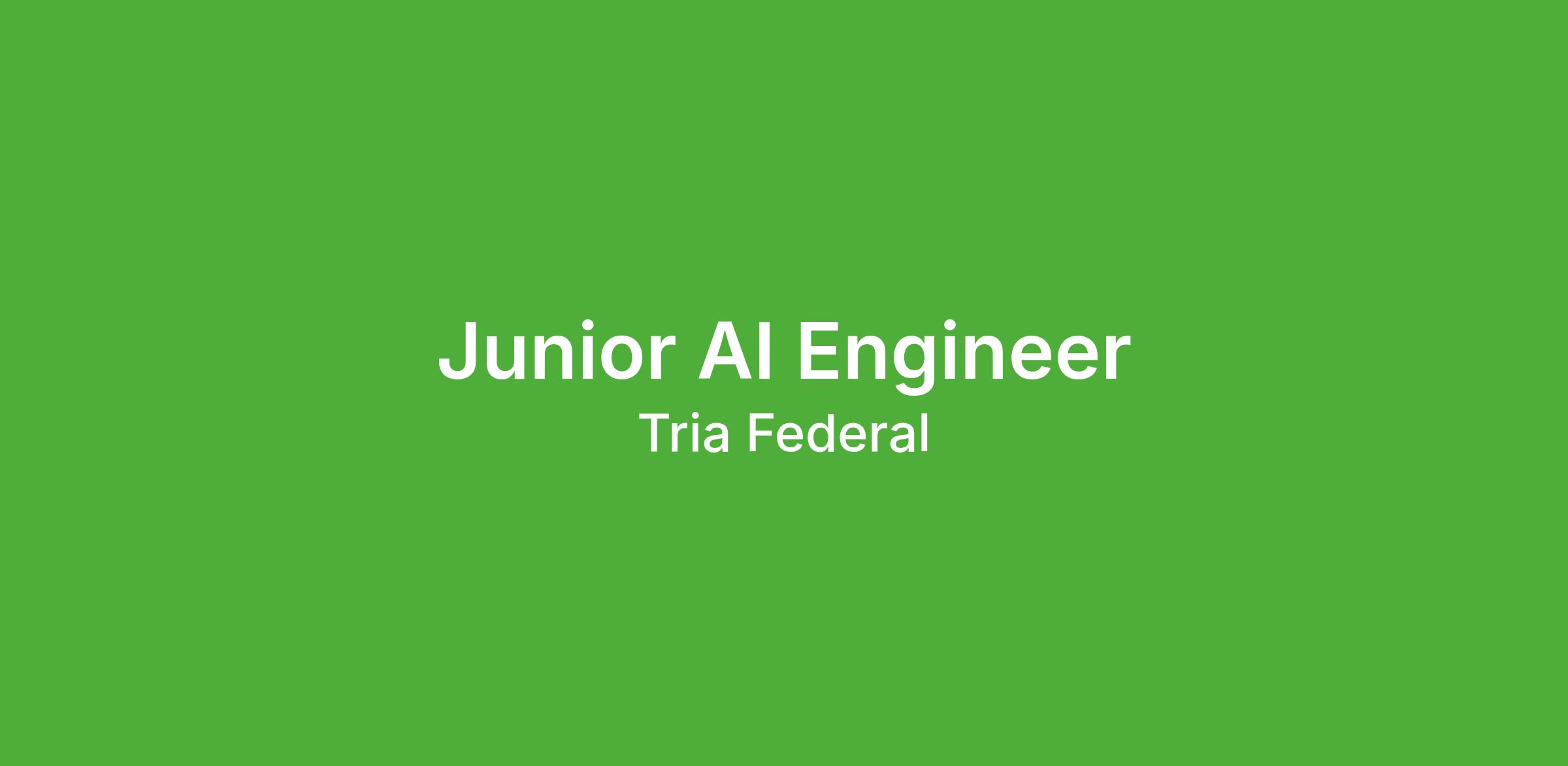 Tria Federal is assembling a small, high-autonomy team of Junior AI Engineers to design and build agentic systems, with outcome focused intelligent software agents that reason, act, and collaborate to solve real-world problems for federal missions.