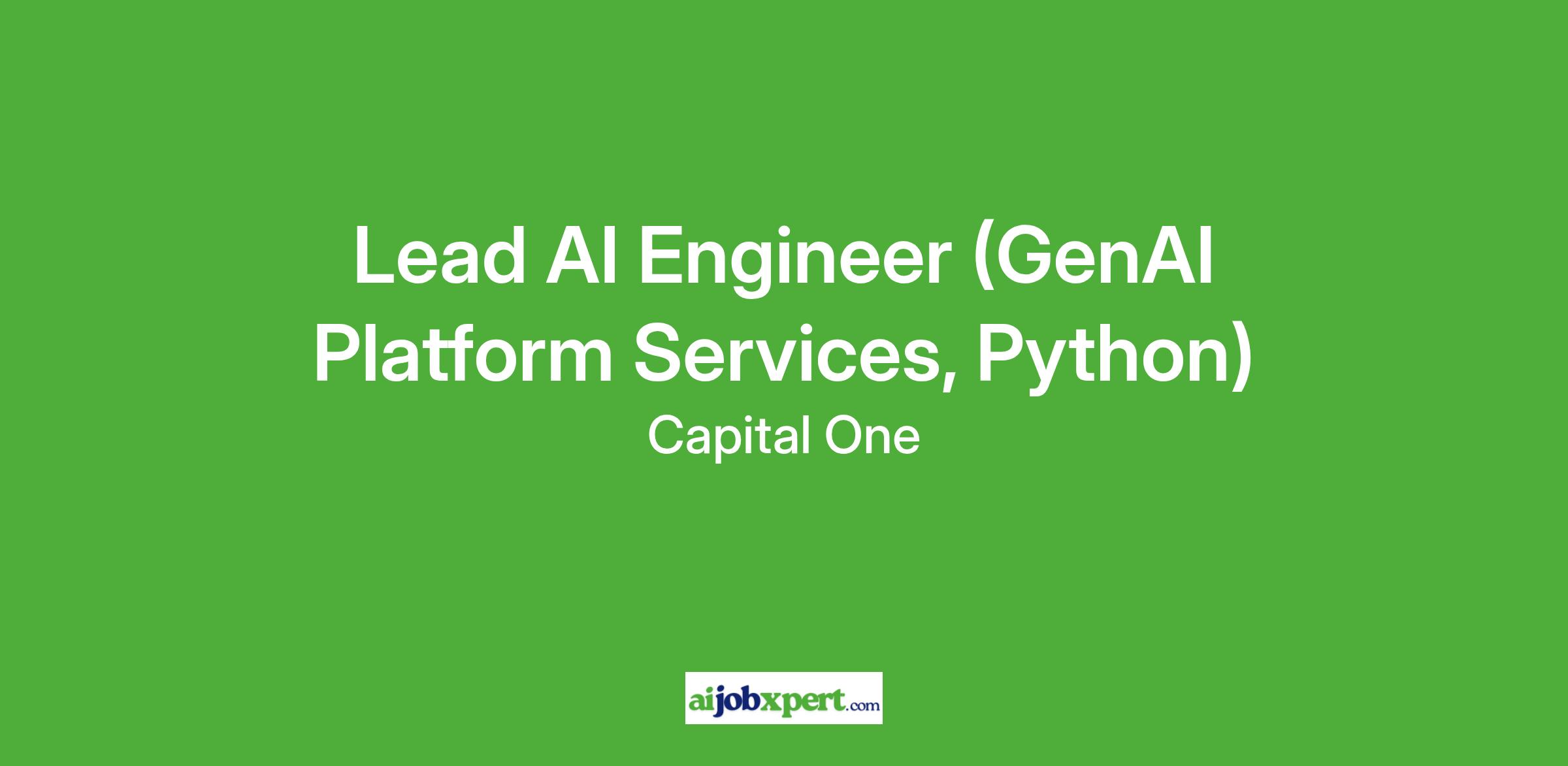 Lead AI Engineer (GenAI Platform Services, Python) Overview At Capital One, we are creating responsible and reliable AI systems, changing banking for good.