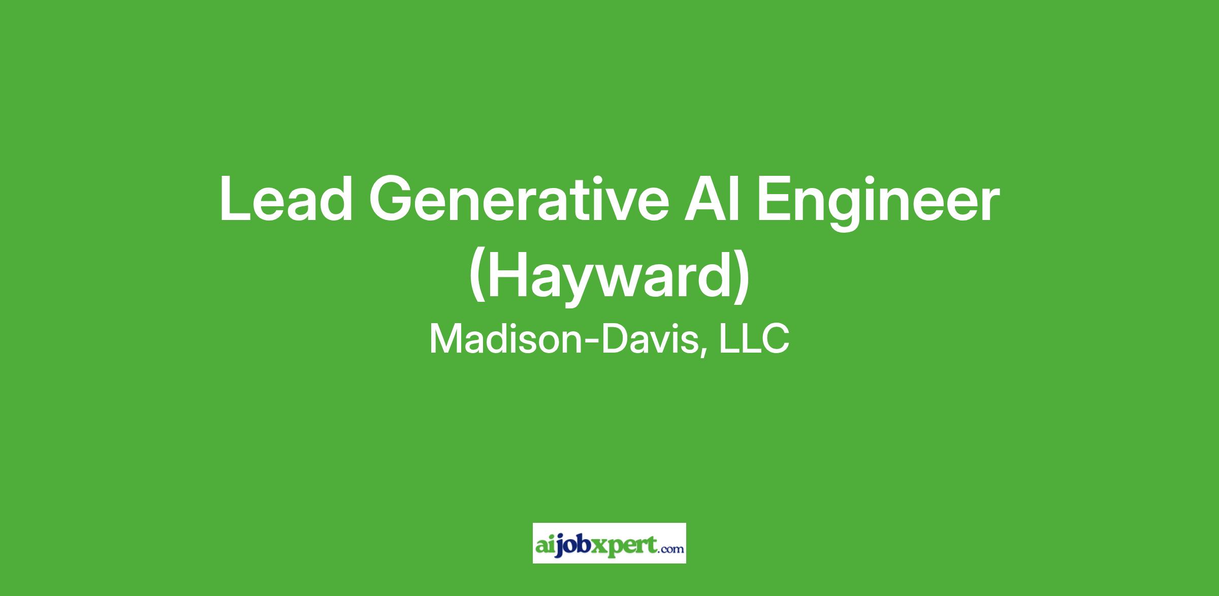 Lead Generative AI Engineer (Hayward)