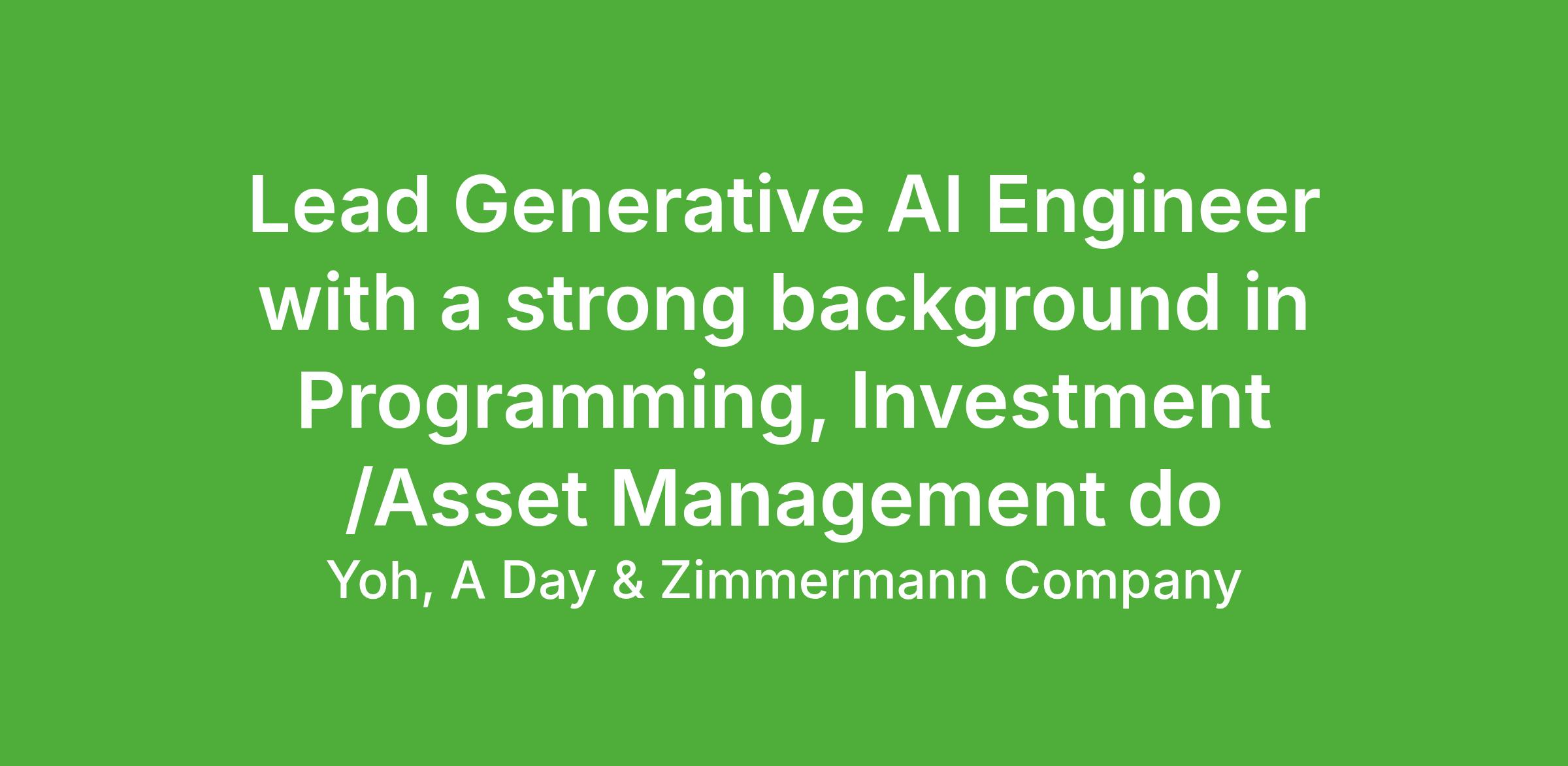 Lead AI Enablement Engineer with a strong background in Programming, Investment & Asset Management domain