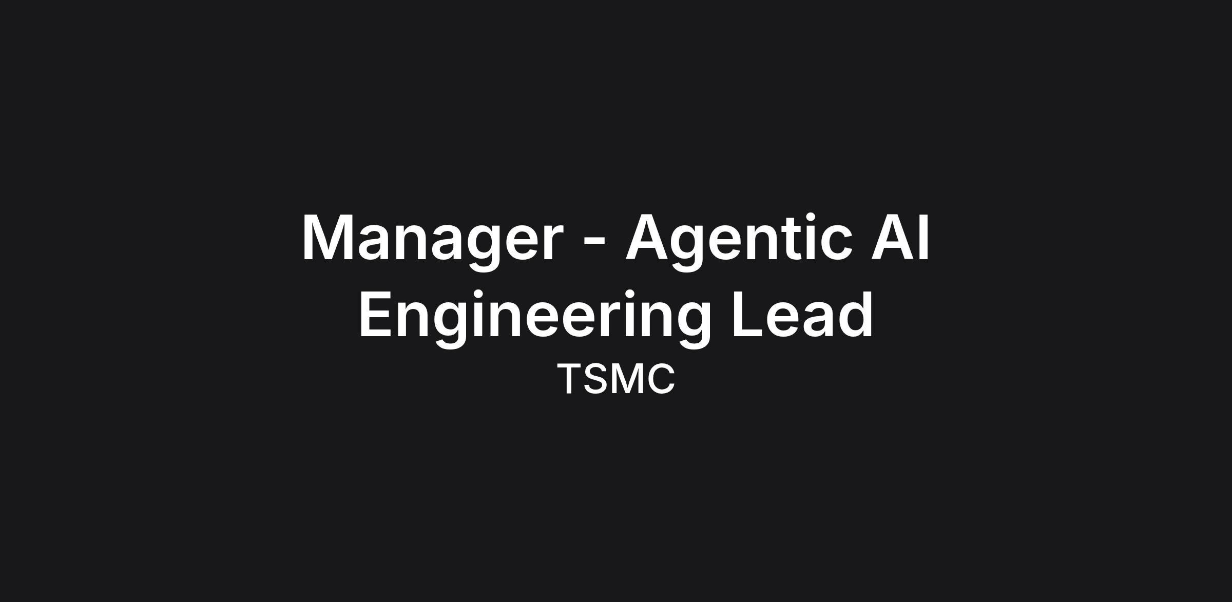A job at TSMC Arizona offers an opportunity to work at the most advanced semiconductor fab in the United States. TSMC Arizona's first fab will operate its leading-edge semiconductor process technology (N4 process), starting production in the first half of 2025. The second fab will utilize its leading edge N3 and N2 process technology and be operational in 2028. The recently announced third fab will manufacture chips using 2nm or even more advanced process technology, with production starting by the end of the decade. America's leading technology companies are ready to rely on TSMC Arizona for the next generations of chips that will power the digital future. As the Manager of Agentic AI Engineering, you will lead a highly specialized team driving the development of cutting-edge AI systems. The manager will lead efficiency across three key areas: Data Cleaning Model Fine-Tuning Agentic AI Creation This individual will oversee a team of senior engineers and work closely with leadership, product, and research teams to drive the development of cutting-edge AI systems.