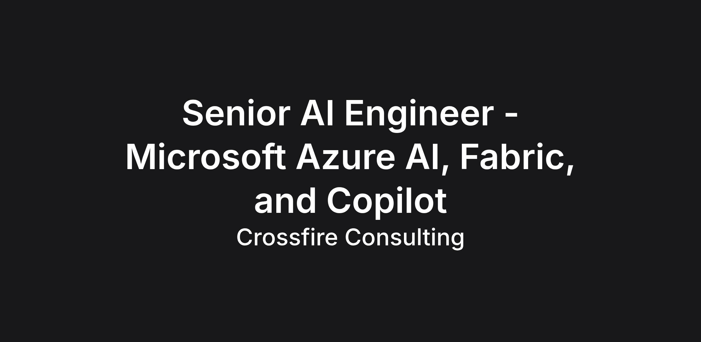 Senior AI Engineer - Microsoft Azure AI, Fabric, and Copilot
