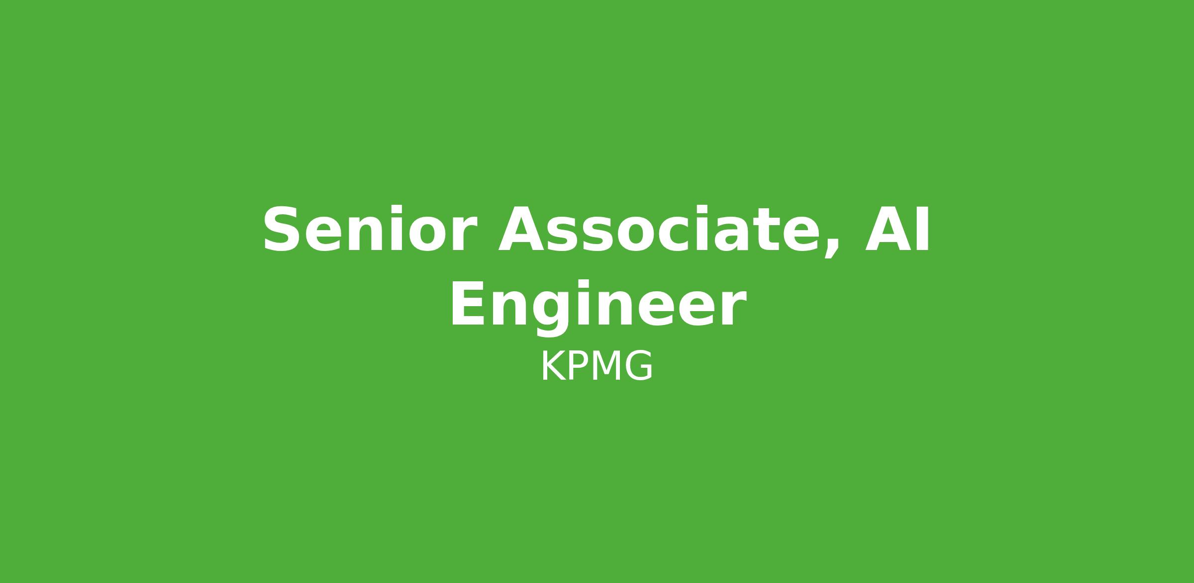 KPMG Advisory practice is currently our fastest growing practice. We are seeing tremendous client demand, and looking forward we do not anticipate that slowing down. In this ever-changing market environment, our professionals must be adaptable and thrive in a collaborative, team-driven culture. At KPMG, our people are our number one priority. With a wealth of learning and career development opportunities, a world-class training facility and leading market tools, we make sure our people continue to grow both professionally and personally. If you're looking for a firm with a strong team connection where you can be your whole self, have an impact, advance your skills, deepen your experiences, and have the flexibility and access to constantly find new areas of inspiration and expand your capabilities, then consider a career in Advisory.KPMG is currently seeking a Senior Associate, AI Engineer to join our Advisory Services practice.Responsibilities:Develop GenAI / LLM applications and integrations using foundational models under the guidance of senior team membersDevelop and test AI models, conversational agents, and workflow automation components under the guidance of senior team membersAssist with data preparation, transformation, and validation to support AI/ML model training and deploymentConfigure and integrate AI solutions into enterprise applications (CRM, ERP, collaboration tools) using cloud platformsDocument processes, code, and technical workflows to support knowledge sharing and project continuity; collaborate with project teams to troubleshoot technical issues and ensure solutions meet client requirementsStay current on emerging AI tools and frameworks, experimenting and applying them to real-world client projectsAct with integrity, professionalism, and personal responsibility to uphold KPMG's respectful and courteous work environmentQualifications:Minimum three years of recent professional or academic experience in AI/ML, data science, software engineering, or cloud technologiesBachelor's degree from an accredited college or university in computer science, data science, engineering, or related field; Master's degree from an accredited college or university a plusExperience with at least one major cloud AI platform (Azure AI, AWS AI/Bedrock, or Google Cloud Vertex AI)Proficiency in Python or another programming language commonly used in AI/MLFamiliarity with conversational AI frameworks (LLM's, chatbots, virtual assistants, agents) and APIsStrong analytical skills and attention to detail with the ability to work in a team-based, client-focused environmentAbility to travel as requiredApplicants must be authorized to work in the U.S. without the need for employment-based visa sponsorship now or in the future; KPMG LLP will not sponsor applicants for U.S. work visa status for this opportunity (no sponsorship is available for H-1B, L-1, TN, O-1, E-3, H-1B1, F-1, J-1, OPT, CPT or any other employment-based visa)KPMG LLP and its affiliates and subsidiaries (“KPMG”) complies with all local/state regulations regarding displaying salary ranges. If required, the ranges displayed below or via the URL below are specifically for those potential hires who will work in the location(s) listed. Any offered salary is determined based on relevant factors such as applicant's skills, job responsibilities, prior relevant experience, certain degrees and certifications and market considerations. In addition, KPMG is proud to offer a comprehensive, competitive benefits package, with options designed to help you make the best decisions for yourself, your family, and your lifestyle. Available benefits are based on eligibility. Our Total Rewards package includes a variety of medical and dental plans, vision coverage, disability and life insurance, 401(k) plans, and a robust suite of personal well-being benefits to support your mental health. Depending on job classification, standard work hours, and years of service, KPMG provides Personal Time Off per fiscal year. Additionally, each year KPMG publishes a calendar of holidays to be observed during the year and provides eligible employees two breaks each year where employees will not be required to use Personal Time Off; one is at year end and the other is around the July 4th holiday. Additional details about our benefits can be found towards the bottom of our KPMG US Careers site at Benefits & How We Work.Follow this link to obtain salary ranges by city outside of CA: KPMG offers a comprehensive compensation and benefits package. KPMG is an equal opportunity employer. KPMG complies with all applicable federal, state and local laws regarding recruitment and hiring. All qualified applicants are considered for employment without regard to race, color, religion, age, sex, sexual orientation, gender identity, national origin, citizenship status, disability, protected veteran status, or any other category protected by applicable federal, state or local laws. The attached link contains further information regarding KPMG's compliance with federal, state and local recruitment and hiring laws. No phone calls or agencies please.KPMG recruits on a rolling basis. Candidates are considered as they apply, until the opportunity is filled. Candidates are encouraged to apply expeditiously to any role(s) for which they are qualified that is also of interest to them. Los Angeles County applicants: Material job duties for this position are listed above. Criminal history may have a direct, adverse, and negative relationship with some of the material job duties of this position. These include the duties and responsibilities listed above, as well as the abilities to adhere to company policies, exercise sound judgment, effectively manage stress and work safely and respectfully with others, exhibit trustworthiness, and safeguard business operations and company reputation. Pursuant to the California Fair Chance Act, Los Angeles County Fair Chance Ordinance for Employers, Fair Chan
