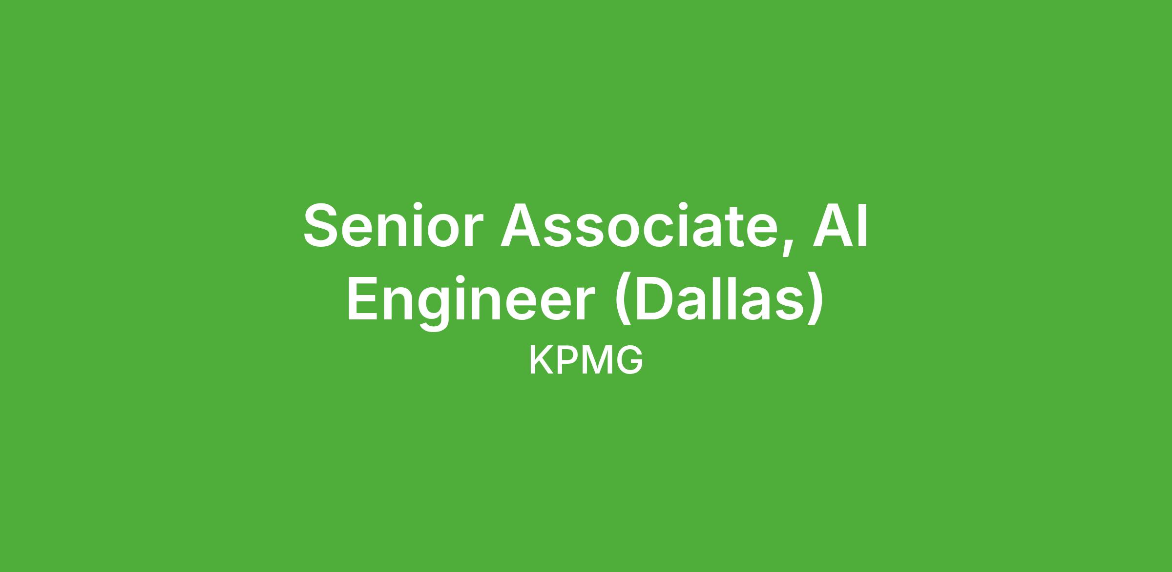 KPMG Advisory practice is currently our fastest growing practice. We are seeing tremendous client demand, and looking forward we do not anticipate that slowing down. In this ever-changing market environment, our professionals must be adaptable and thrive in a collaborative, team-driven culture. At KPMG, our people are our number one priority. With a wealth of learning and career development opportunities, a world-class training facility and leading market tools, we make sure our people continue to grow both professionally and personally. If you're looking for a firm with a strong team connection where you can be your whole self, have an impact, advance your skills, deepen your experiences, and have the flexibility and access to constantly find new areas of inspiration and expand your capabilities, then consider a career in Advisory.KPMG is currently seeking a Senior Associate, AI Engineer to join our Advisory Services practice.Responsibilities:Develop GenAI / LLM applications and integrations using foundational models under the guidance of senior team membersDevelop and test AI models, conversational agents, and workflow automation components under the guidance of senior team membersAssist with data preparation, transformation, and validation to support AI/ML model training and deploymentConfigure and integrate AI solutions into enterprise applications (CRM, ERP, collaboration tools) using cloud platformsDocument processes, code, and technical workflows to support knowledge sharing and project continuity; collaborate with project teams to troubleshoot technical issues and ensure solutions meet client requirementsStay current on emerging AI tools and frameworks, experimenting and applying them to real-world client projectsAct with integrity, professionalism, and personal responsibility to uphold KPMG's respectful and courteous work environmentQualifications:Minimum three years of recent professional or academic experience in AI/ML, data science, software engineering, or cloud technologiesBachelor's degree from an accredited college or university in computer science, data science, engineering, or related field; Master's degree from an accredited college or university a plusExperience with at least one major cloud AI platform (Azure AI, AWS AI/Bedrock, or Google Cloud Vertex AI)Proficiency in Python or another programming language commonly used in AI/MLFamiliarity with conversational AI frameworks (LLM's, chatbots, virtual assistants, agents) and APIsStrong analytical skills and attention to detail with the ability to work in a team-based, client-focused environmentAbility to travel as requiredApplicants must be authorized to work in the U.S. without the need for employment-based visa sponsorship now or in the future; KPMG LLP will not sponsor applicants for U.S. work visa status for this opportunity (no sponsorship is available for H-1B, L-1, TN, O-1, E-3, H-1B1, F-1, J-1, OPT, CPT or any other employment-based visa)KPMG LLP and its affiliates and subsidiaries (“KPMG”) complies with all local/state regulations regarding displaying salary ranges. If required, the ranges displayed below or via the URL below are specifically for those potential hires who will work in the location(s) listed. Any offered salary is determined based on relevant factors such as applicant's skills, job responsibilities, prior relevant experience, certain degrees and certifications and market considerations. In addition, KPMG is proud to offer a comprehensive, competitive benefits package, with options designed to help you make the best decisions for yourself, your family, and your lifestyle. Available benefits are based on eligibility. Our Total Rewards package includes a variety of medical and dental plans, vision coverage, disability and life insurance, 401(k) plans, and a robust suite of personal well-being benefits to support your mental health. Depending on job classification, standard work hours, and years of service, KPMG provides Personal Time Off per fiscal year. Additionally, each year KPMG publishes a calendar of holidays to be observed during the year and provides eligible employees two breaks each year where employees will not be required to use Personal Time Off; one is at year end and the other is around the July 4th holiday. Additional details about our benefits can be found towards the bottom of our KPMG US Careers site at Benefits & How We Work.Follow this link to obtain salary ranges by city outside of CA: KPMG offers a comprehensive compensation and benefits package. KPMG is an equal opportunity employer. KPMG complies with all applicable federal, state and local laws regarding recruitment and hiring. All qualified applicants are considered for employment without regard to race, color, religion, age, sex, sexual orientation, gender identity, national origin, citizenship status, disability, protected veteran status, or any other category protected by applicable federal, state or local laws. The attached link contains further information regarding KPMG's compliance with federal, state and local recruitment and hiring laws. No phone calls or agencies please.KPMG recruits on a rolling basis. Candidates are considered as they apply, until the opportunity is filled. Candidates are encouraged to apply expeditiously to any role(s) for which they are qualified that is also of interest to them. Los Angeles County applicants: Material job duties for this position are listed above. Criminal history may have a direct, adverse, and negative relationship with some of the material job duties of this position. These include the duties and responsibilities listed above, as well as the abilities to adhere to company policies, exercise sound judgment, effectively manage stress and work safely and respectfully with others, exhibit trustworthiness, and safeguard business operations and company reputation. Pursuant to the California Fair Chance Act, Los Angeles County Fair Chance Ordinance for Employers, Fair Chan