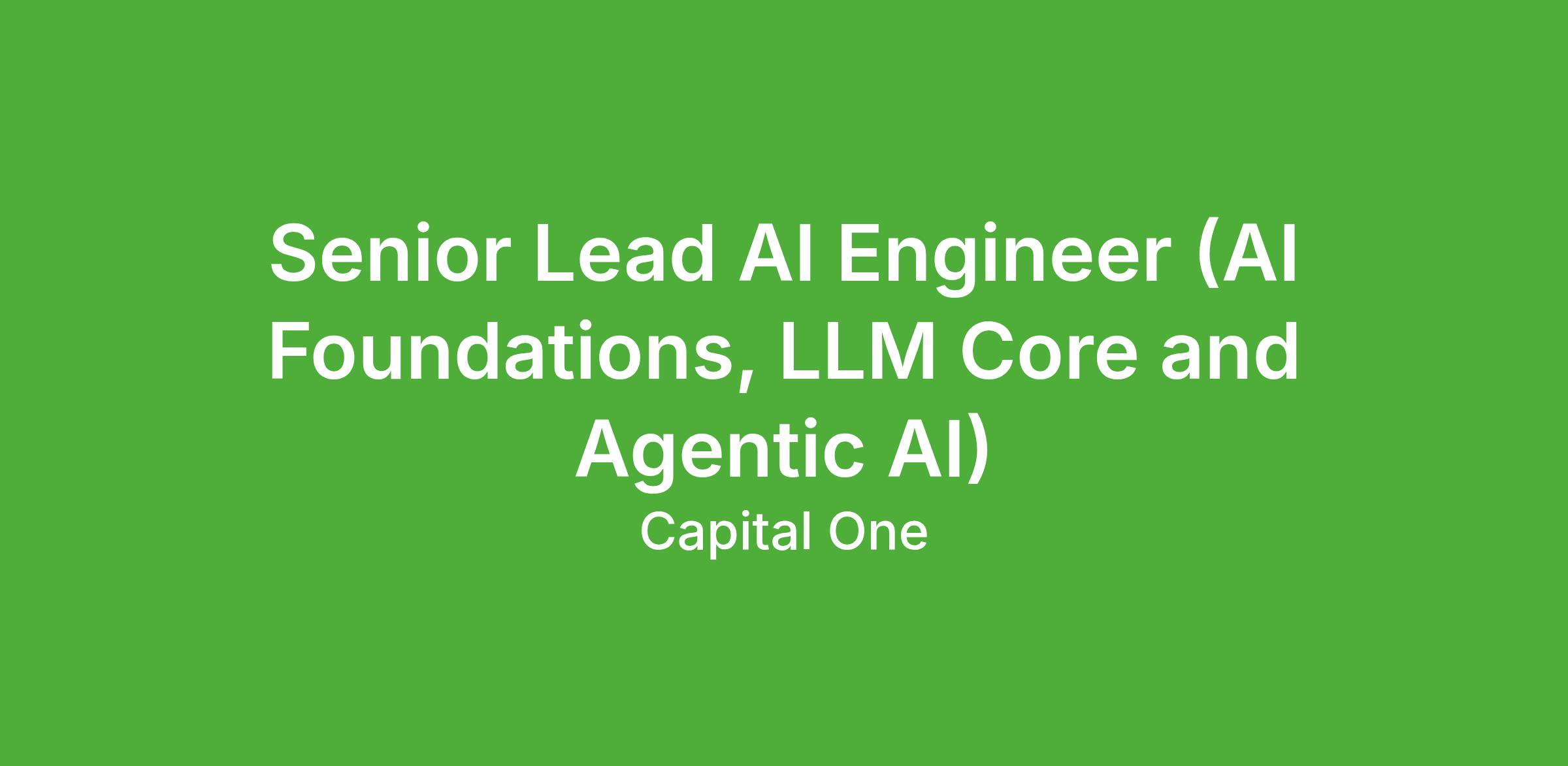 Senior Lead AI Engineer (AI Foundations, LLM Core and Agentic AI)