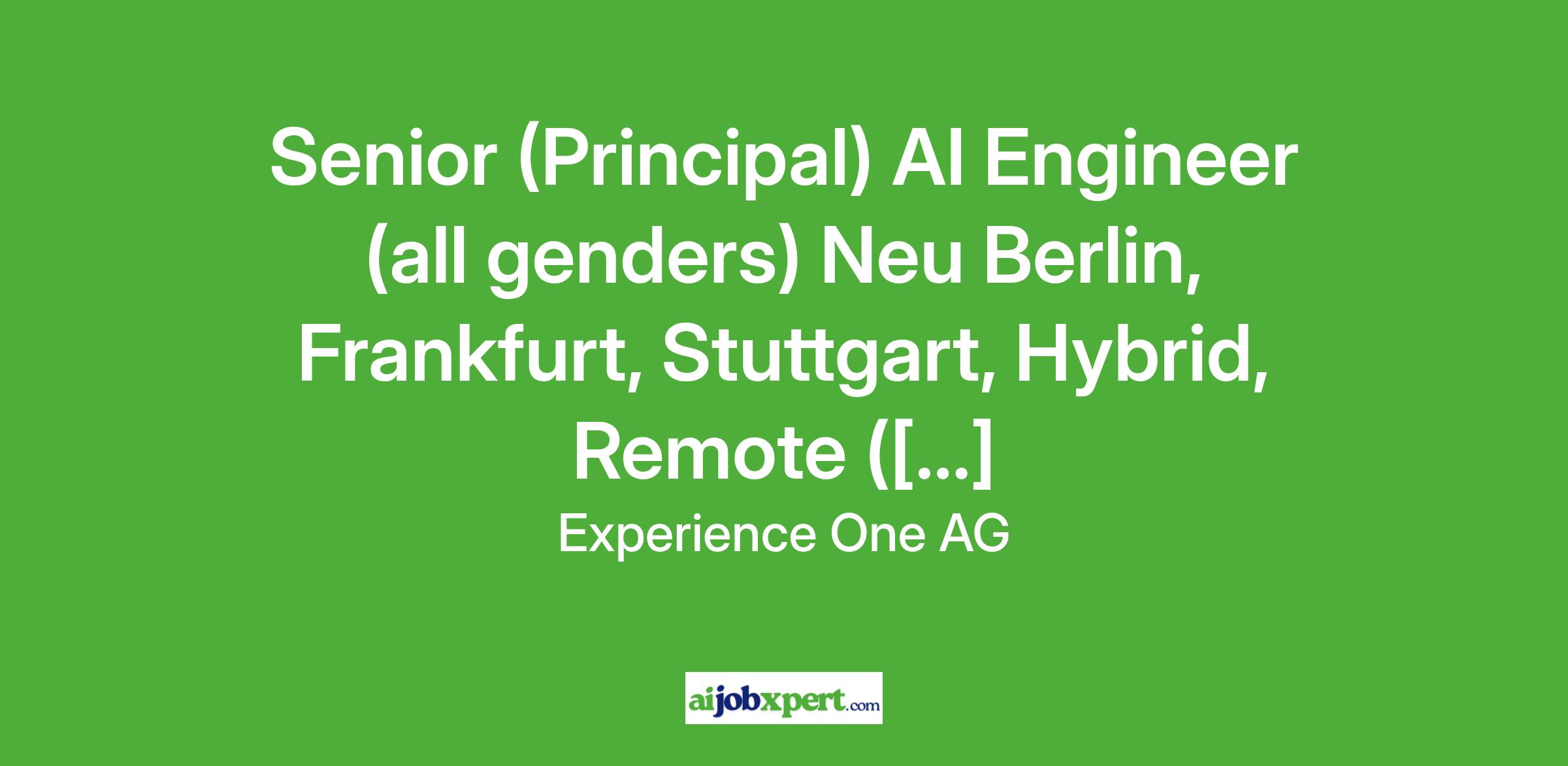 Senior (Principal) AI Engineer (all genders) Neu Berlin, Frankfurt, Stuttgart, Hybrid, Remote ([...]
