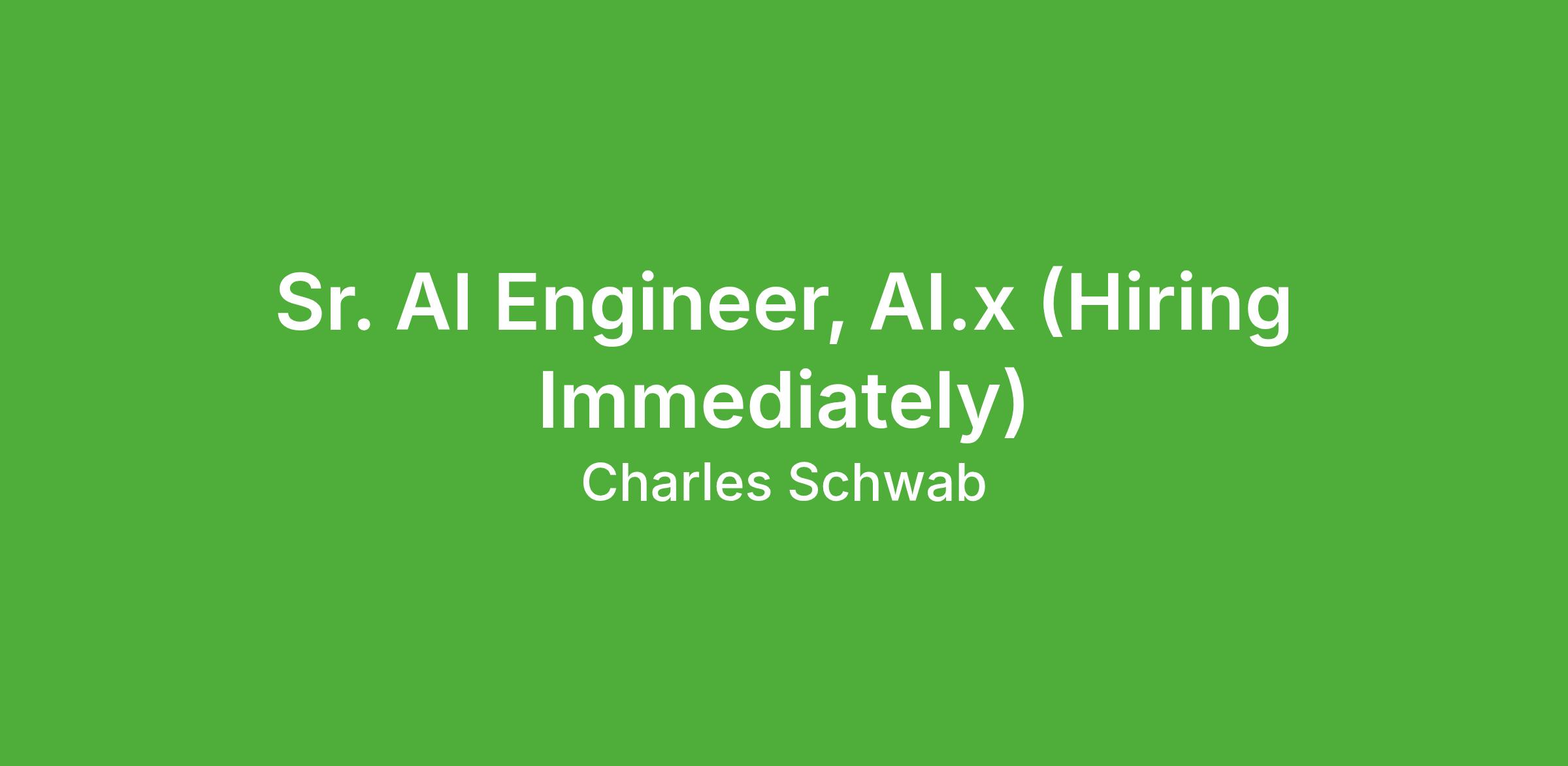 Sr. AI Engineer, AI.x (Hiring Immediately)