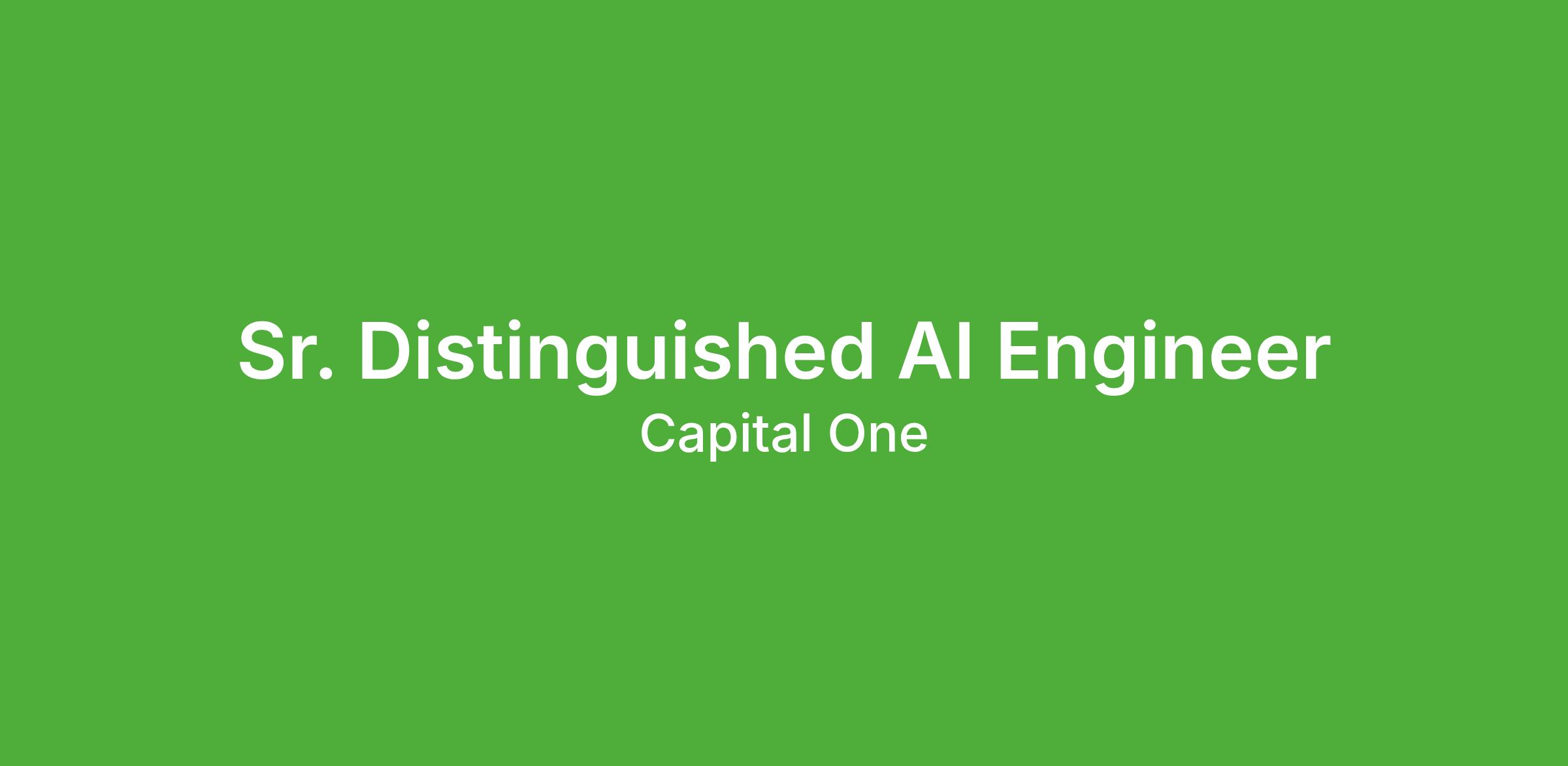 * You love to build systems, take pride in the quality of your work, and also share our passion to do the right thing. You want to work on problems that will help change banking for good.* Passion for staying abreast of the latest research, and an ability to intuitively understand scientific publications and judiciously apply novel techniques in production.* You adapt quickly and thrive on bringing clarity to big, undefined problems. You love asking questions and digging deep to uncover the root of problems and can articulate your findings concisely with clarity. You have the courage to share new ideas even when they are unproven.* You are deeply Technical. You possess a strong foundation in engineering and mathematics, and your expertise in hardware, software, and AI enable you to see and exploit optimization opportunities that others miss.* You are a resilient trail blazer who can forge new paths to achieve business goals when the route is unknown.* Bachelor's degree in Computer Science, AI, Electrical Engineering, Computer Engineering, or related fields plus at least 10 years of experience developing AI and ML algorithms or technologies, or a Master's degree in Computer Science, AI, Electrical Engineering, Computer Engineering, or related fields plus at least 8 years of experience developing AI and ML algorithms or technologies* At least 10 years of experience programming with Python, Go, Scala, or Java* 9 years of experience deploying scalable and responsible AI solutions on cloud platforms (e.g. AWS, Google Cloud, Azure, or equivalent private cloud)* Experience architecting, designing, developing, integrating, delivering, and supporting complex enterprise AI systems* Demonstrated ability to lead and mentor an engineering organization and influence cross-functional stakeholders up to the SVP level* Experience developing AI and ML algorithms or technologies (e.g. LLM Inference, Similarity Search and VectorDBs, Guardrails, Memory) using Python, C++, C#, Java, or Golang* Experience developing and applying state-of-the-art techniques for optimizing training and inference software to improve hardware utilization, latency, throughput, and cost* Passion for staying abreast of the latest AI research and AI systems, and judiciously apply novel techniques in production* Excellent communication and presentation skills, with the ability to articulate complex AI concepts to peers* Experience building and deploying multi-modal models for technologies like computer vision, speech recognition, optical character recognition, or other sensor systems in application such as robotics, digital assistants, industrial automation, autonomous driving, or relatedCapital One offers a comprehensive, competitive, and inclusive set of health, financial and other benefits that support your total well-being. Learn more at the . Eligibility varies based on full or part-time status, exempt or non-exempt status, and management level.